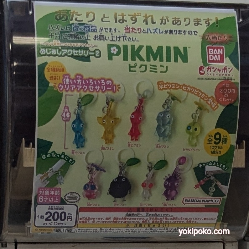 ピクミンのめじるしアクセサリー2のガチャのみが入っているガチャガチャ、もはや見つけた時点でガチャガチャの中が空です。誰がガチャ出来ているのでしょう。私が見つけるタイミングがたまたま合っていないのでしょうか。大きなスーパーでガチャガチャを発見した時は「あった!」と見つけただけで感動ですが、中を見てショックです。売り切れです。
